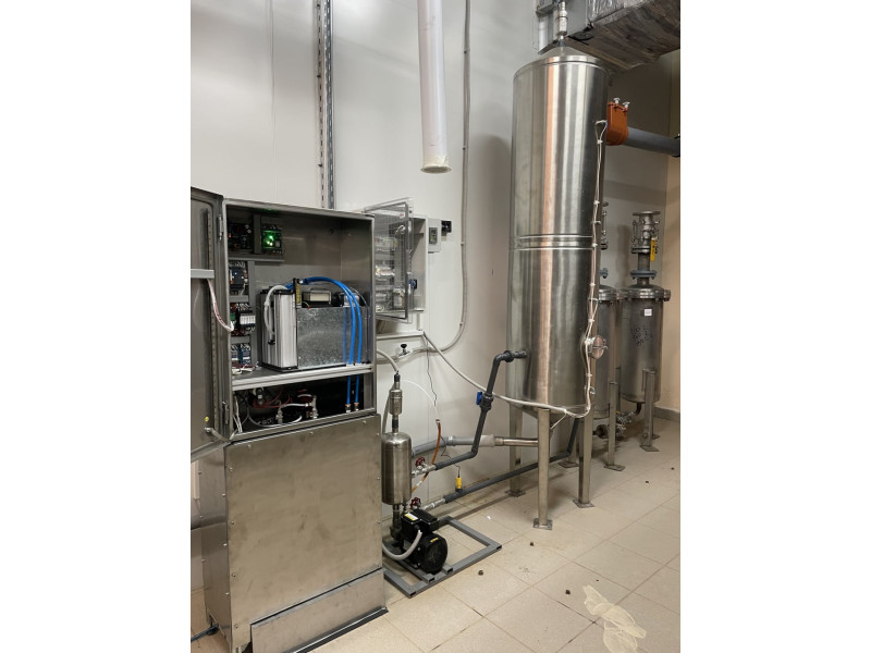 Генератор озона должен быть установлен в чистом, сухом помещении. Для работы генератора озона необходимо подать в него чистый воздух, подключить к электропитанию, СИМ-карта для модема. Озон будет подаваться в специальный штуцер насоса-миксера. Насос забирает воду из бака дезинфекции и возвращает в бак воду с мельчайшими пузырьками озона. В баке озон растворяется в воде. Для контроля концентрации озона на всасывающем трубопроводе насоса монтируется ячейка с ОВП-датчиком. Для поддержания заданной концентрации озона в воде изменяется производительность по озону генератора. После выдержки заданного времени контакта озона с водой насос останавливается и автоматика подает сигнал на открытие затвора для слива продезинфицированной воды.
